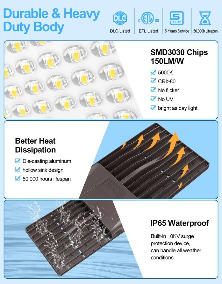ไฟถนน LED 90W 100W 150W 320W ที่จอดรถกลางแจ้งโคมไฟติดถนนหลักตกแต่งสวนได้รับการรับรอง UL DLC ETL