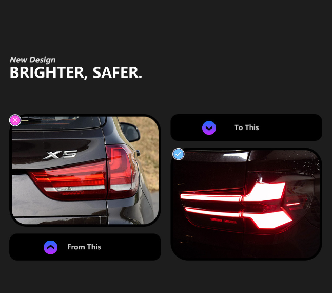 ไฟท้าย LED สำหรับ X5 F15 2014-2018 12V ใหม่ 6000K ไฟเลี้ยวกลางวัน ไฟเบรก ชุดติดตั้งเพิ่ม/อัพเกรด 36W 6000 ลูเมน รับประกัน 1 ปี