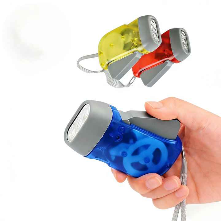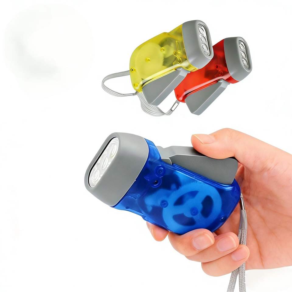ไฟฉาย LED อลูมิเนียมอัลลอยแบบหมุนมือ ระดับกันน้ำ IP68 ใช้พลังงานจากมือหมุน เหมาะสำหรับการตั้งแคมป์และการปฐมพยาบาล
