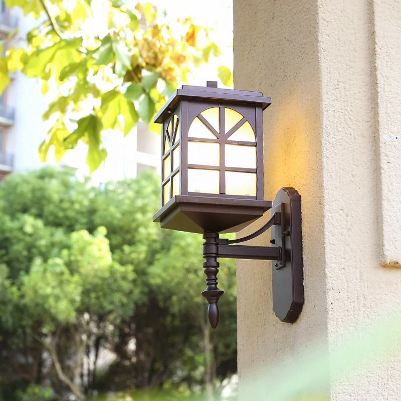 โคมไฟ LED ติดผนังกลางแจ้ง, โคมไฟแก้วสไตล์นอร์ดิกย้อนยุคโบราณ E27สว่างมากติดผนังทางเข้าวิลล่าโคมไฟติดผนัง
