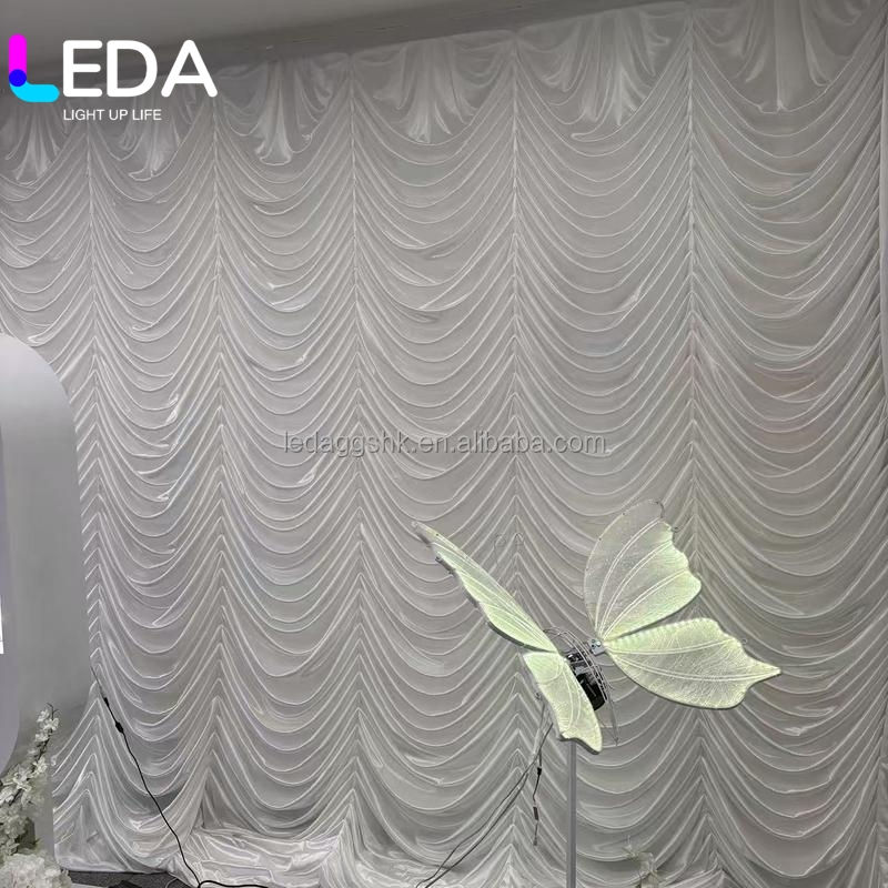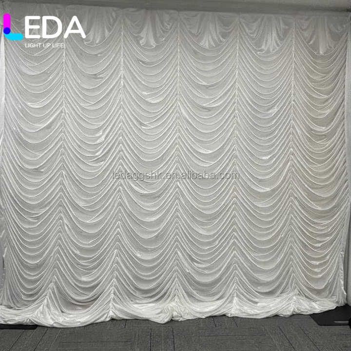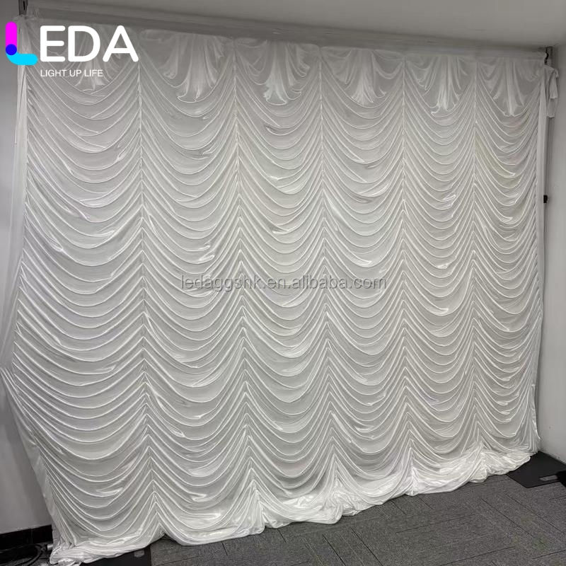 ฉากหลังผ้าไหมน้ำแข็งลายคลื่น LEDA ขนาด 10*10 ฟุต สำหรับตกแต่งงานวันเกิด งานแต่งงาน และเวที