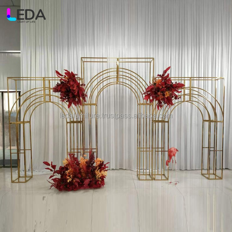 Lida Arch ฉากหลังแต่งงานชุดตกแต่งภายในห้องโถงดอกไม้สีทองสำหรับงานแต่งงาน