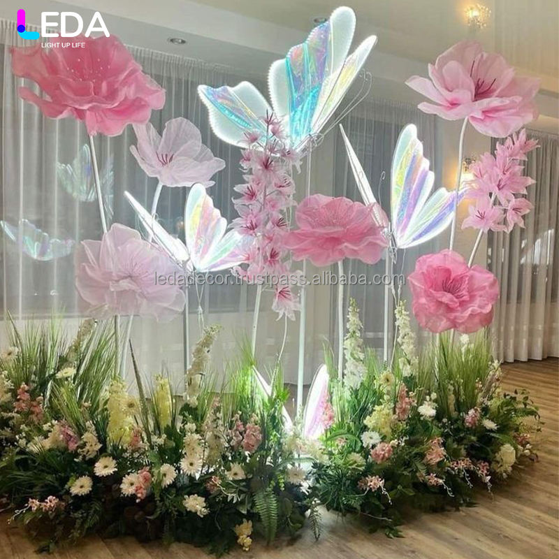 Leda ชุดดอกโบตั๋นกระดาษออแกนซ่าประดิษฐ์ดอกไม้กระดาษผ้าโปร่งบางดอกป๊อปปี้ดอกไม้งานแต่งงานสุดหรูตกแต่งงานแต่งงานงานจัดแสดงดอกไม้