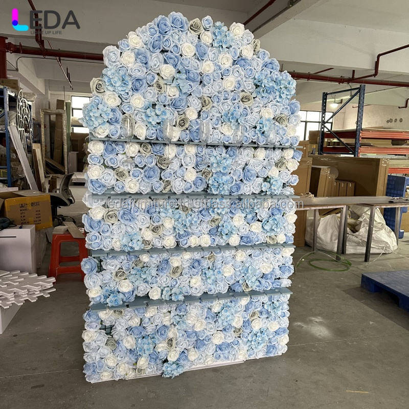 Leda ดอกกุหลาบสีขาวสีฟ้าตกแต่งผนังฉากหลังดอกไม้ประดิษฐ์สำหรับงานแต่งงาน