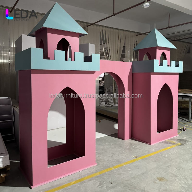 Leda โครงสร้างตกแต่งรูปปราสาทที่มีสีสันสดใสของตกแต่งสีชมพูสดใสสำหรับงานปาร์ตี้