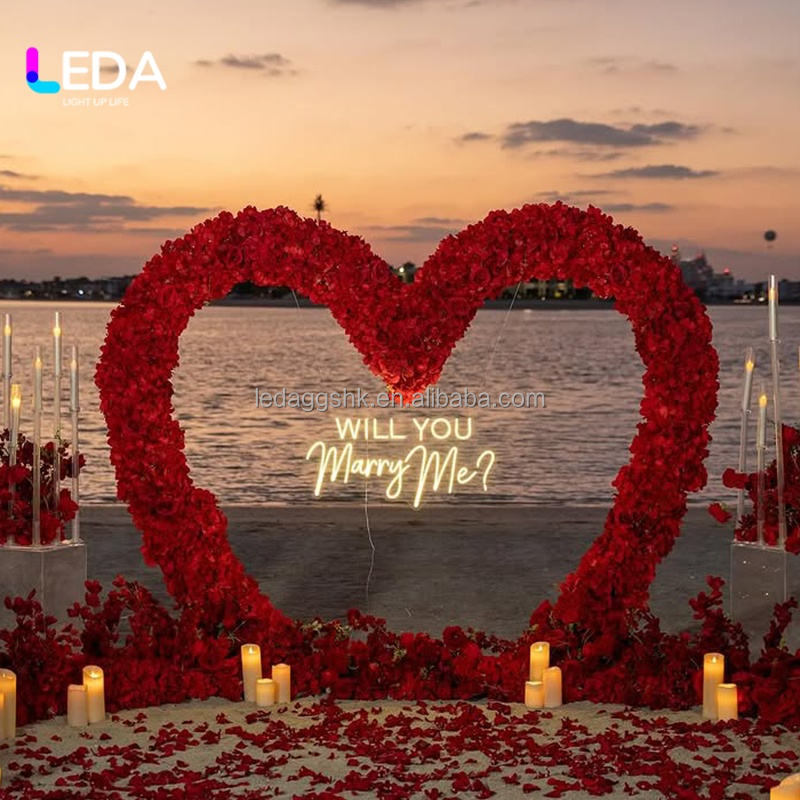 ซุ้มดอกไม้ประดิษฐ์ LEDA ขนาด 7 ฟุต ทำมือจากผ้าไหม สำหรับตกแต่งงานแต่งงาน ฉากหลังรูปหัวใจสีชมพู สำหรับงานแต่งงานและงานปาร์ตี้