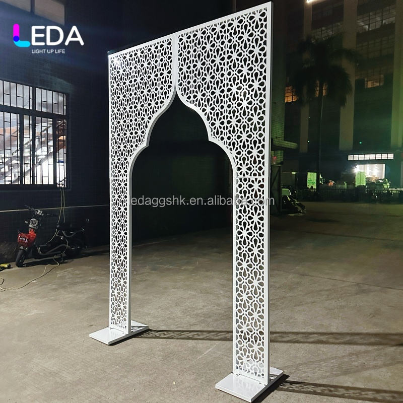 ฉากหลังงานแต่งงานแบบอินเดียสั่งทำพิเศษจาก LEDA สำหรับตกแต่งสถานที่จัดงานเลี้ยง ทำจากสแตนเลสสีขาวแบบโปร่ง สำหรับตกแต่งงานอีเว้นท์