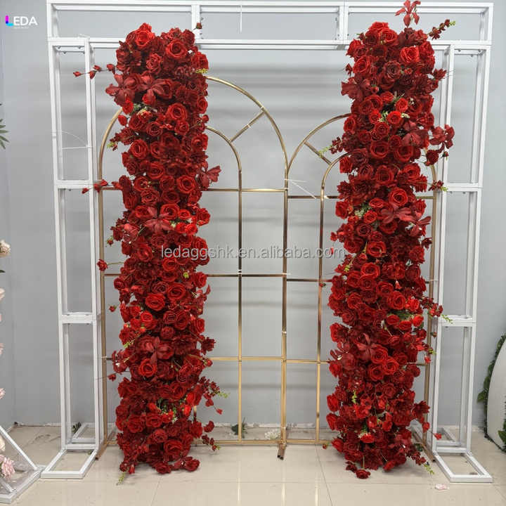 พรมดอกกุหลาบแดงแบบกำหนดเองของ LEDA สำหรับงานแต่งงาน งานอีเว้นท์ ดอกไม้ประดิษฐ์ทำมือ ฉากหลังนุ่มนวลสำหรับวันวาเลนไทน์