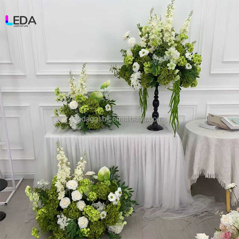 ลูกบอลดอกไม้ประดิษฐ์สีขาวโรแมนติกแบบกำหนดเองของ LEDA พร้อมหญ้าสีเขียวสำหรับตกแต่งฉากหลังงานแต่งงานและงานอีเว้นท์