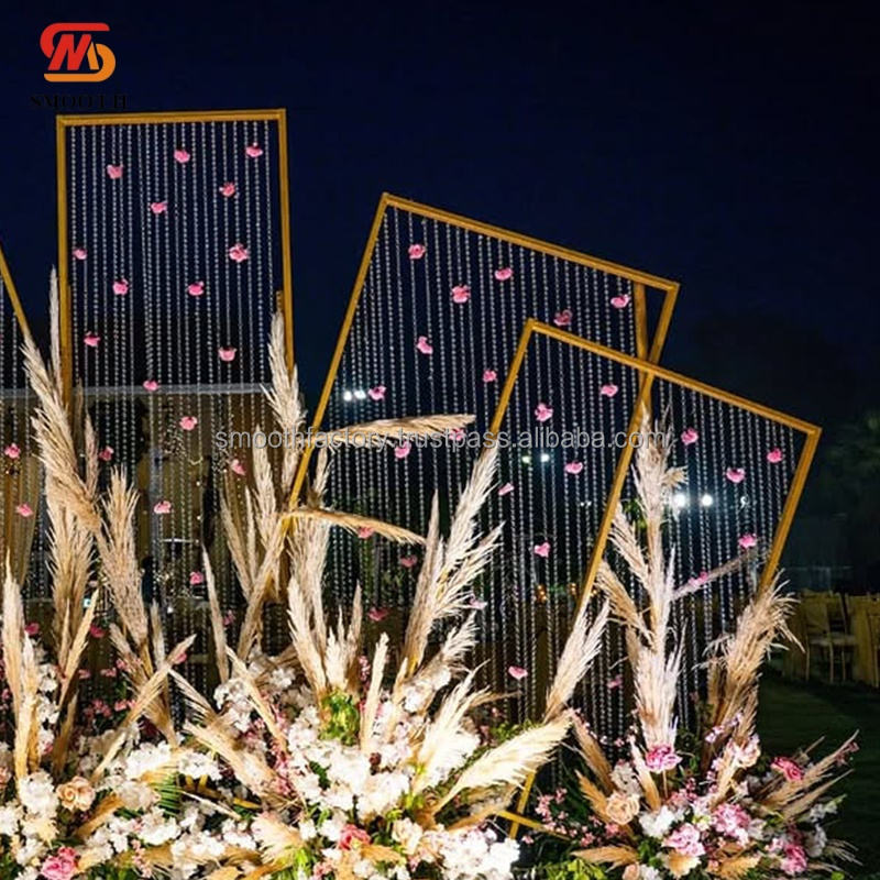 ฉากหลังสี่เหลี่ยมแบบกำหนดเอง LEDA พร้อมม่านลูกปัดตกแต่ง ชุดซุ้มเวทีงานแต่งงาน