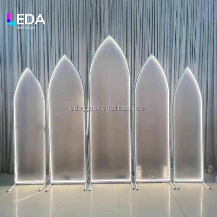 ซุ้มแต่งงานสีขาวแบบโมเดิร์น LEDA พร้อมไฟ LED ตกแต่งฉากหลัง โครงเหล็ก แผงอะคริลิค สำหรับตกแต่งงานอีเว้นท์