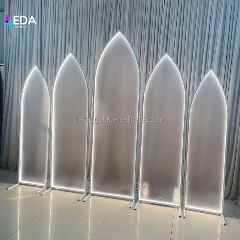 ซุ้มแต่งงานสีขาวแบบกำหนดเอง LEDA ซุ้มโลหะพร้อมไฟตกแต่งงานแต่งงาน แผงอะคริลิคสำหรับตกแต่งงานแต่งงาน