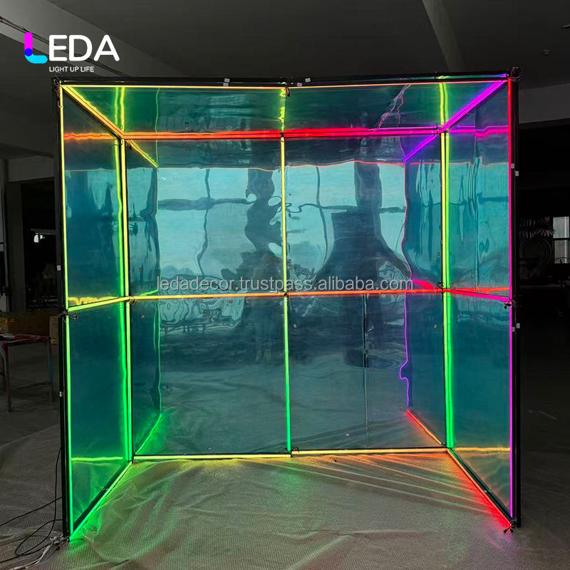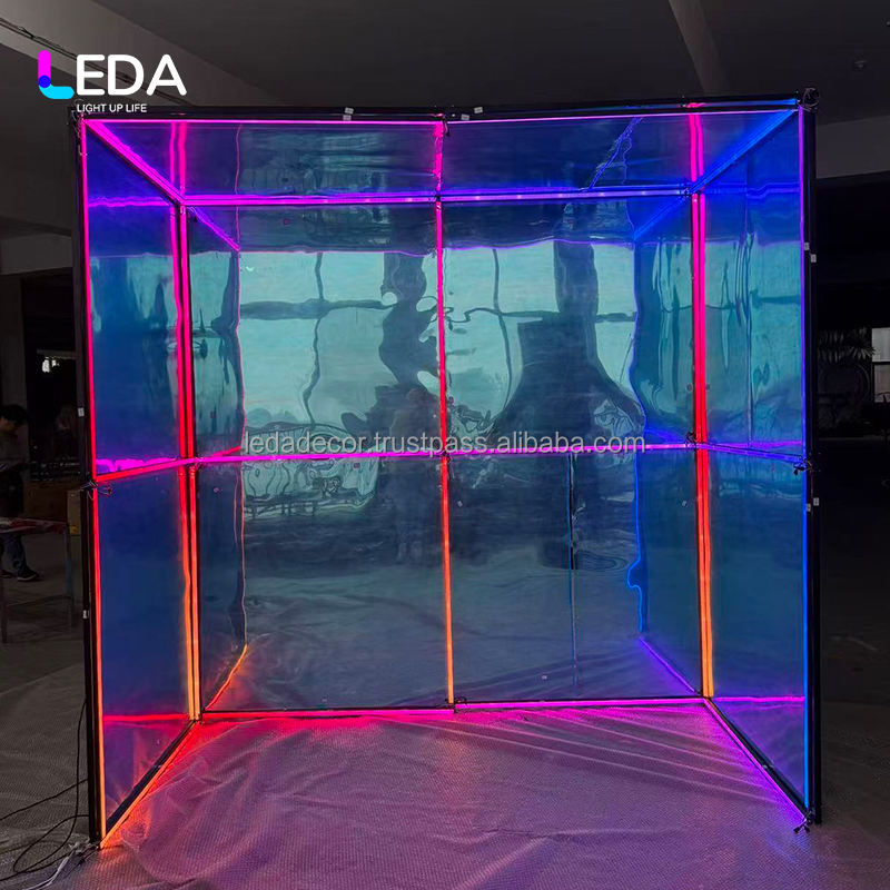 บูธถ่ายรูปทรงโค้งโลหะแบบกำหนดเองของ LEDA พร้อมกระจกแบบถอดได้สำหรับงานแต่งงาน งานปาร์ตี้ และงานอีเวนต์
