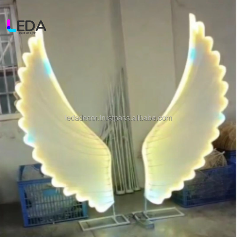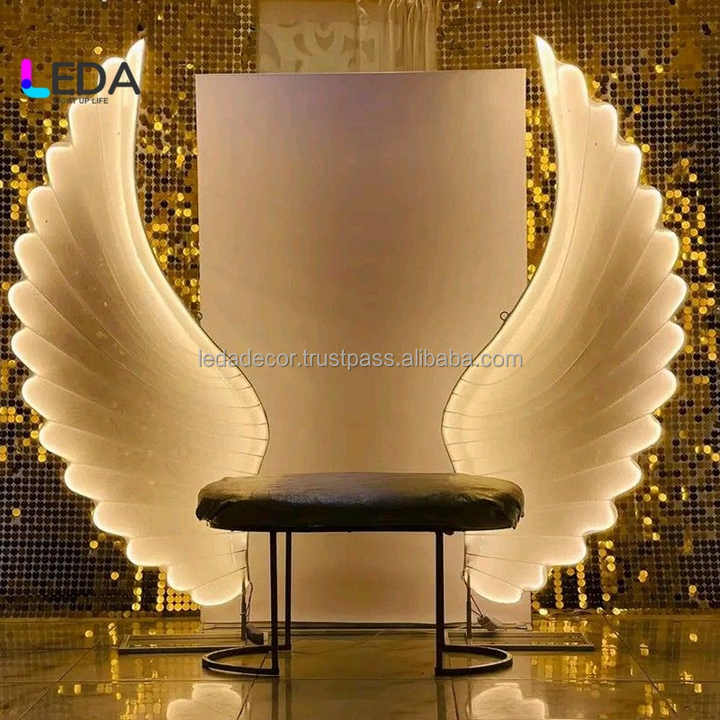 ฉากหลังงานแต่งงานรูปทรงโค้งโลหะสุดหรูแบบมืออาชีพของ LEDA ปีกนางฟ้า ทนทาน สูง 8-9 ฟุต กว้าง 6 ฟุตขึ้นไป สำหรับเวที