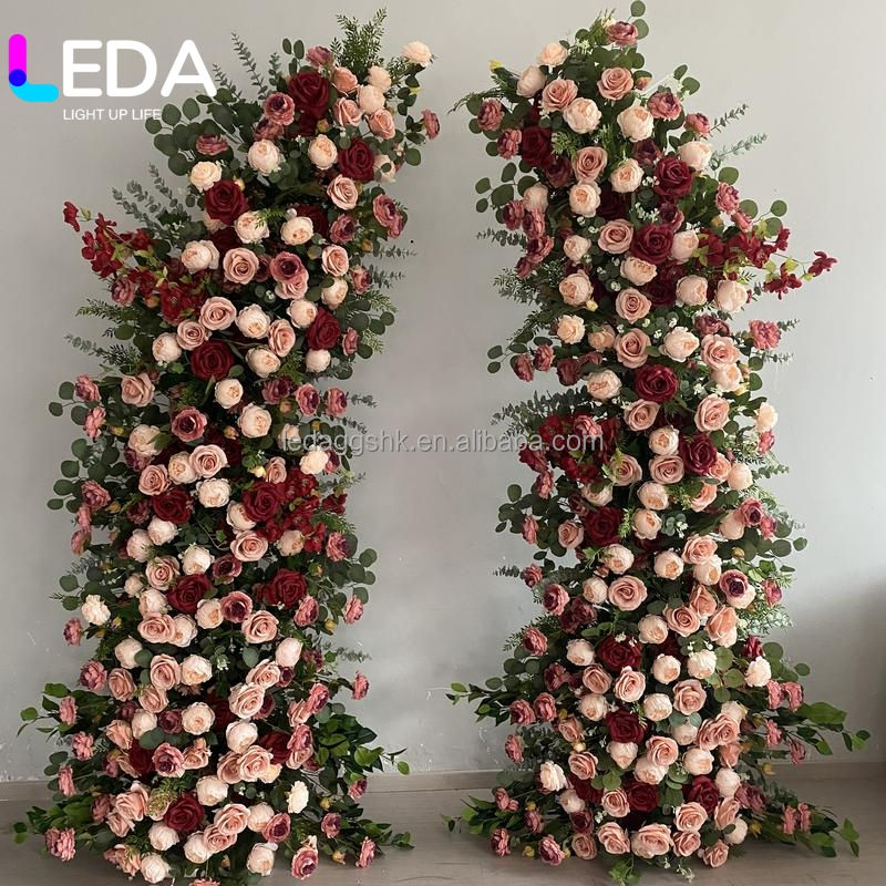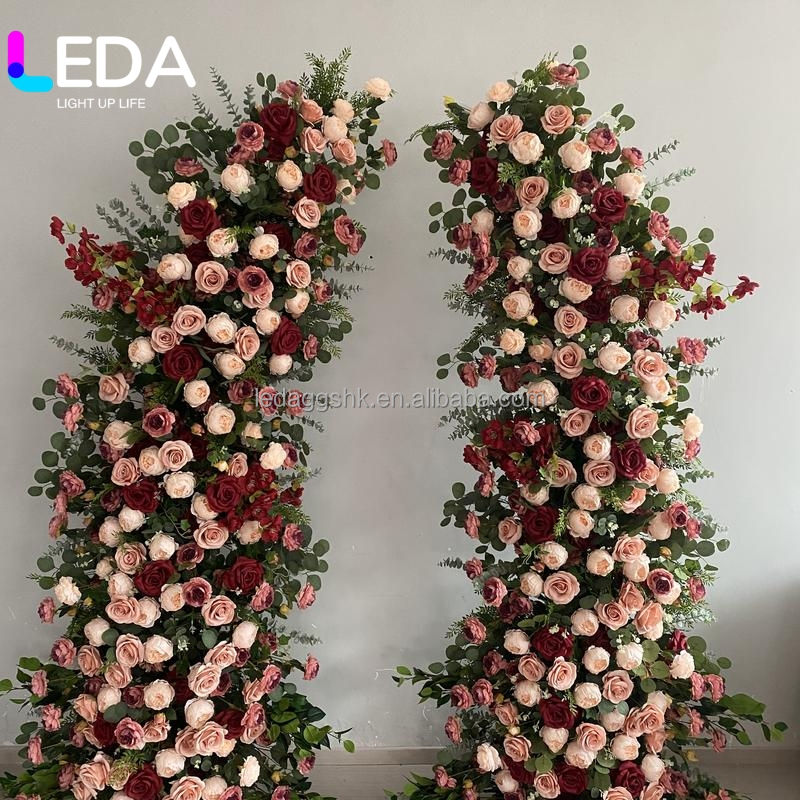 ซุ้มดอกไม้แต่งงานแบบกำหนดเอง LEDA ดอกกุหลาบเบอร์กันดีประดิษฐ์ ดอกพีโอนีสีครีม สำหรับตกแต่งทางเดินในงานอีเว้นท์และงานปาร์ตี้