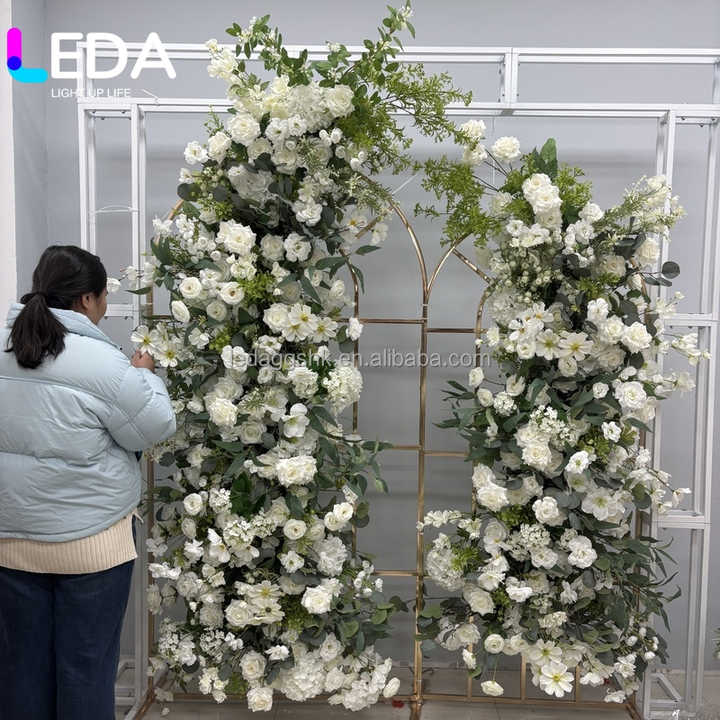 ซุ้มดอกไม้สีขาวแบบกำหนดเองของ LEDA สำหรับตกแต่งงานแต่งงาน ประตูดอกไม้ ทางเข้างานแต่งงาน ตกแต่งแถวดอกไม้