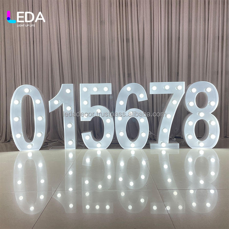 Leda ป้ายอิเล็กทรอนิคส์ LED โลหะหมายเลข0ถึง9สีขาว3ฟุต4ฟุตป้ายไฟสำหรับงานแต่งงานงานปาร์ตี้