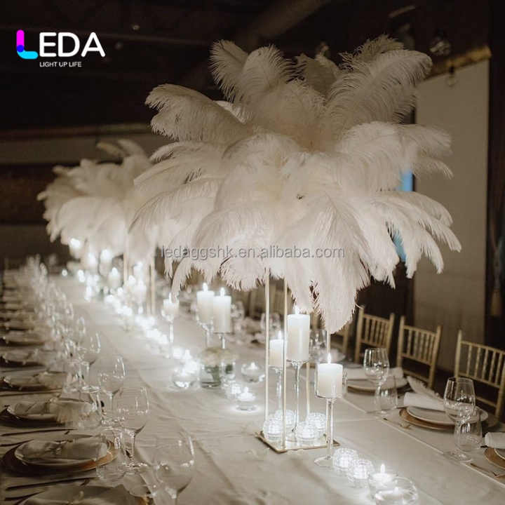 ของตกแต่งโต๊ะงานแต่งงานทรงกลมขนนกแท้สีขาว LEDA ดีไซน์ทันสมัย สวยงาม สำหรับงานปาร์ตี้และงานอีเว้นท์ ปรับขนาดได้
