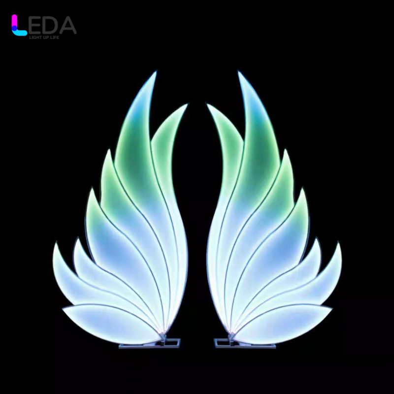 Leda ไฟ LED รูปปีกสีทองสวยงามสำหรับตกแต่งซุ้มโลหะเรืองแสงฉากหลังสำหรับงานเลี้ยง