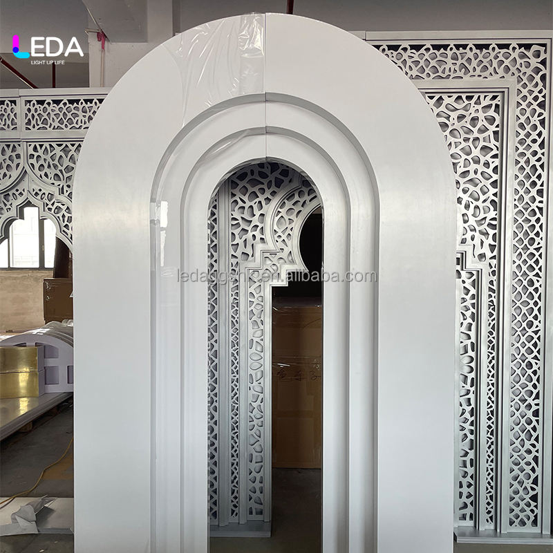 โรงงาน LEDA ผลิตซุ้มอะคริลิคสีขาวตามสั่ง ขนาดต่างๆ ฉากหลัง PVC ซุ้มประตูหลายชั้นสำหรับงานแต่งงาน งานอีเว้นท์ และงานปาร์ตี้