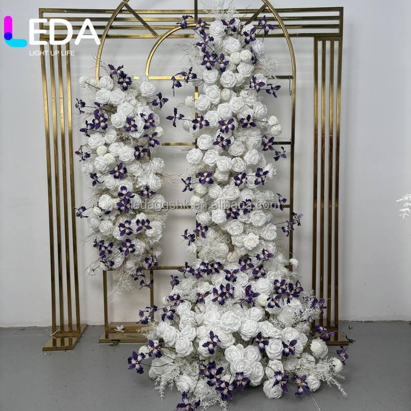 โรงงาน LEDA รับจัดดอกไม้ประดิษฐ์สีขาวม่วง รูปแบบดอกกุหลาบ สำหรับตกแต่งโต๊ะงานแต่งงานและงานอีเว้นท์