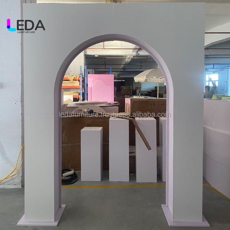 LDA ฉากหลังแต่งงานสีขาวอะคริลิครูปพื้นหลังดีไซน์ลายดอกไม้ปรับแต่งได้ตามสมัยนิยม
