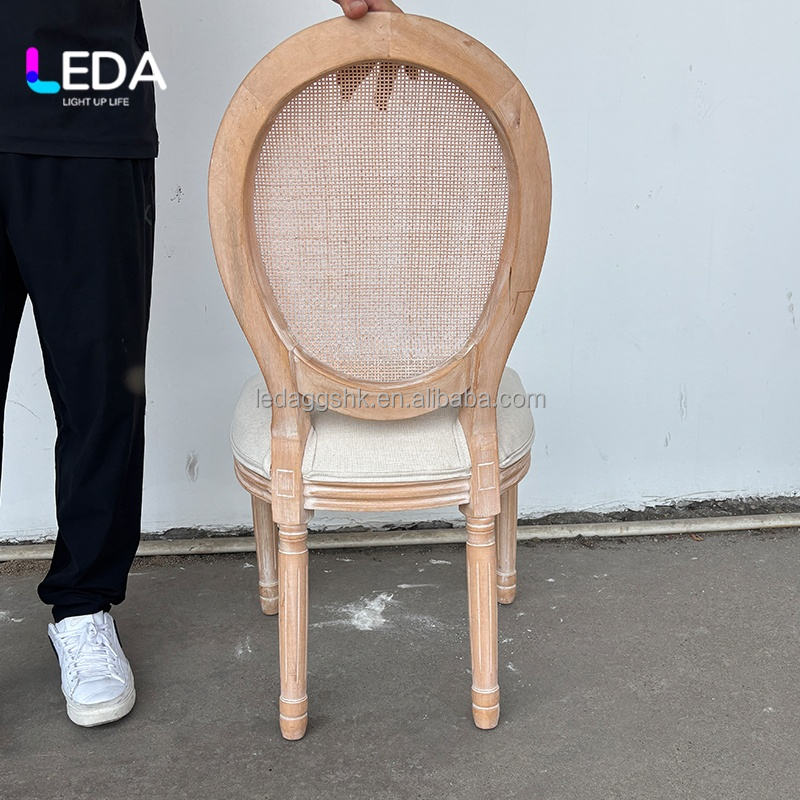 เก้าอี้ทานอาหารงานแต่งงาน ไม้เนื้อแข็ง ทรงกลม หวายพนักพิง
