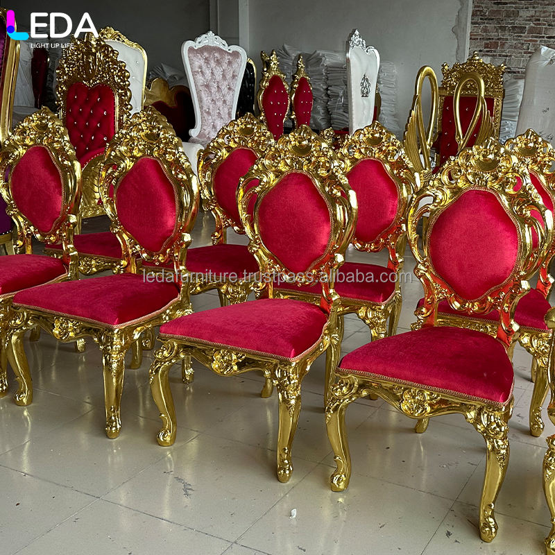 เก้าอี้โซฟาร้านอาหารหรูหรา Lida French Royal เก้าอี้รับประทานอาหารกุหลาบแดงสีทองคลาสสิกเฟอร์นิเจอร์ตกแต่งห้องนั่งเล่น