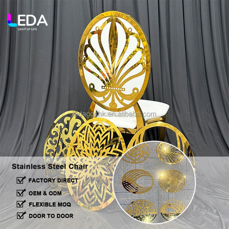 เก้าอี้จัดเลี้ยง/ห้องโถง ดีไซน์ทันสมัย ยี่ห้อ LEDA รุ่น Golden Pattern โครงหลังสแตนเลส หุ้มหนัง PU แบบถอดเปลี่ยนได้ เหมาะสำหรับงานแต่งงานในโรงแรม