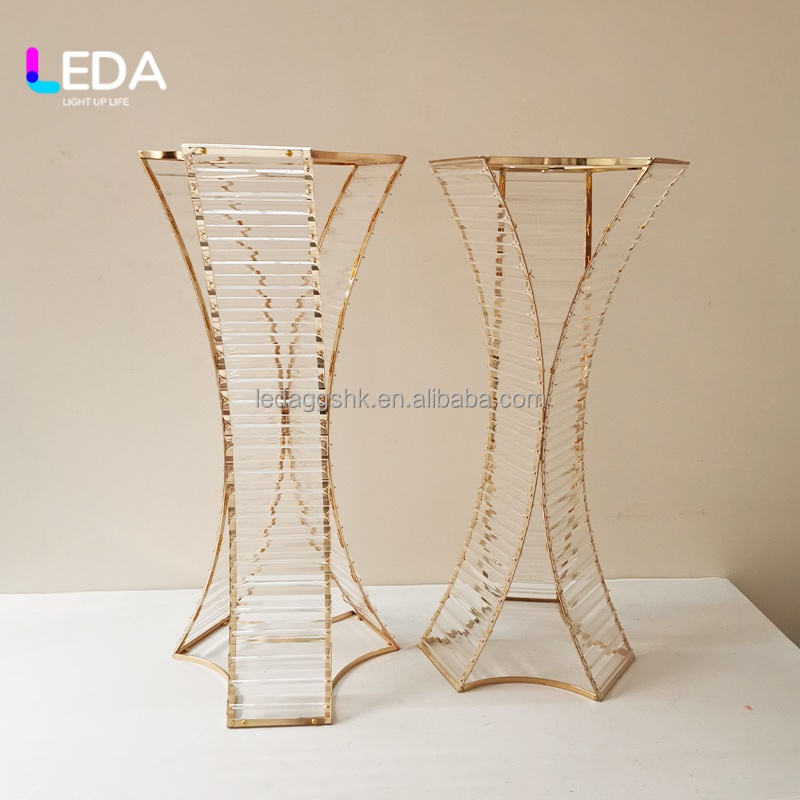 ขาตั้งดอกไม้โลหะสีทองคุณภาพสูง LEDA พร้อมลูกปัดคริสตัล สำหรับตกแต่งโต๊ะงานแต่งงานและงานปาร์ตี้