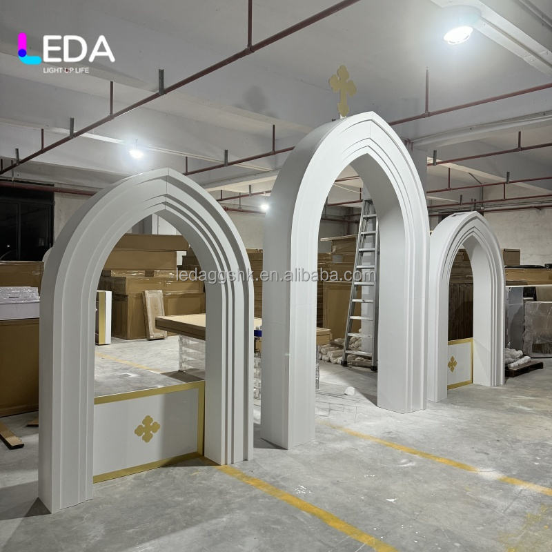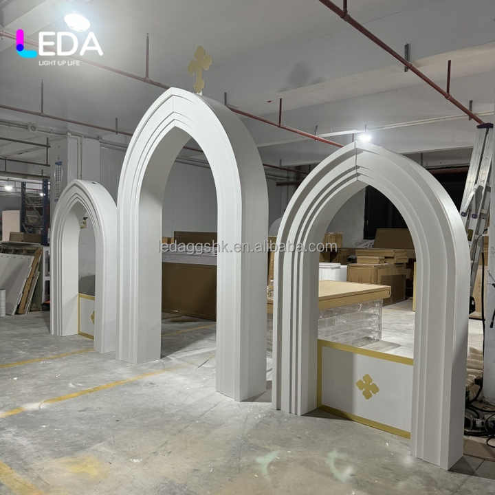 ฉากหลังงานแต่งงานอะคริลิคสีขาวทรงโค้ง LEDA สวยหรู สำหรับตกแต่งงานอีเว้นท์