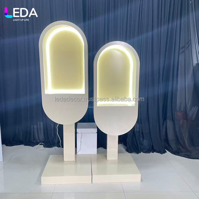 ขาตั้งโทรศัพท์โลหะสีขาวแบบกำหนดเอง LEDA ขายดี พร้อมไฟวอร์มไลท์ สำหรับตกแต่งฉากหลังงานแต่งงานและงานอีเว้นท์ต่างๆ