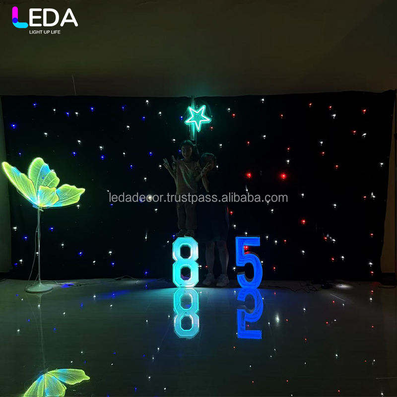 ฉากหลังไฟ LED อะคริลิค LEDA รุ่นโมเดิร์น ลายท้องฟ้าเต็มดาว แสงสี RGB สำหรับตกแต่งงานแต่งงานและกิจกรรมต่างๆ
