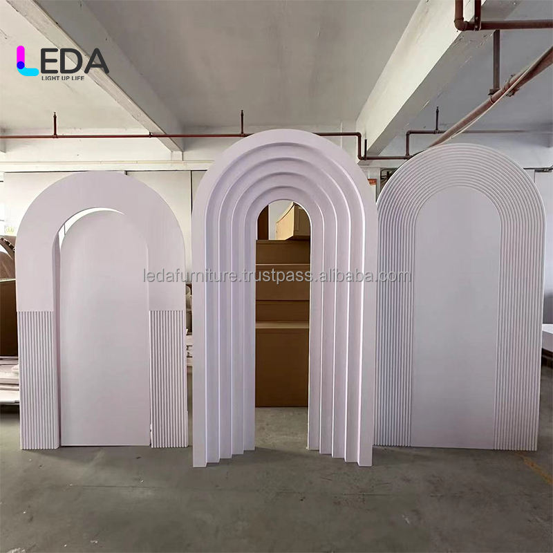 ฉากหลังงานเลี้ยง LEDA ลดราคาพิเศษ ซุ้มโค้ง PVC สำหรับงานแต่งงานสไตล์วินเทจ ฉากหลังอะคริลิคสีขาว ตกแต่งเวทีด้วยพวงมาลัยดอกไม้