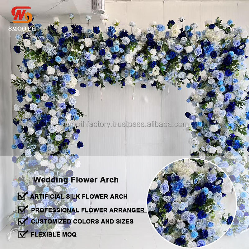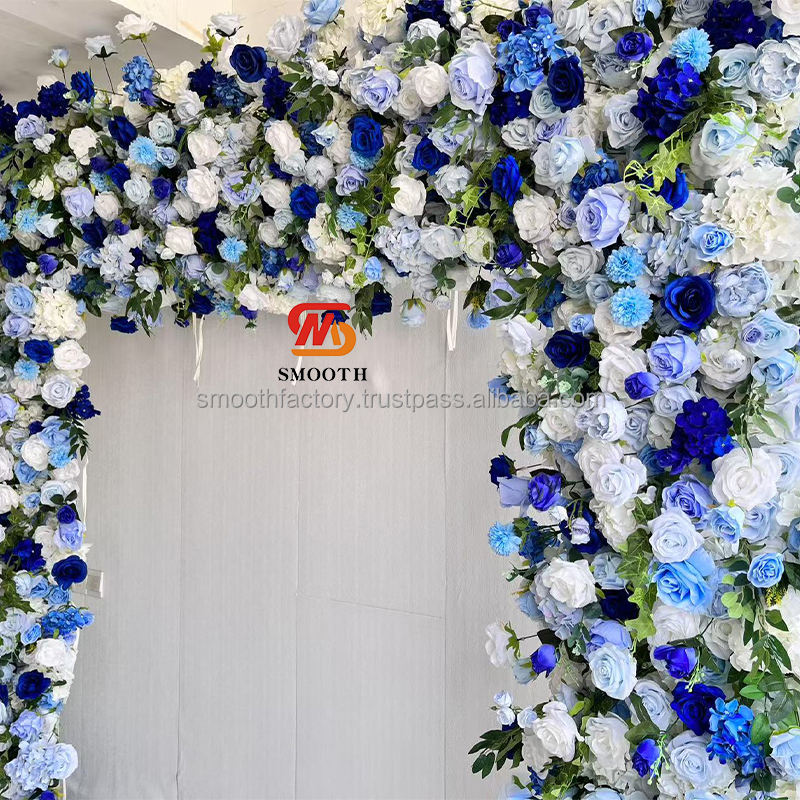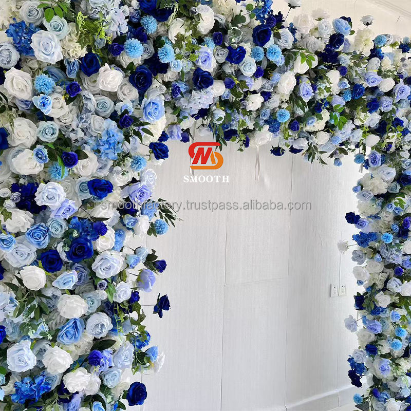 ซุ้มดอกไม้รูปสี่เหลี่ยมผืนผ้าสีฟ้าขาวลายดอกกุหลาบ ขายดี สำหรับตกแต่งงานแต่งงานกลางแจ้ง