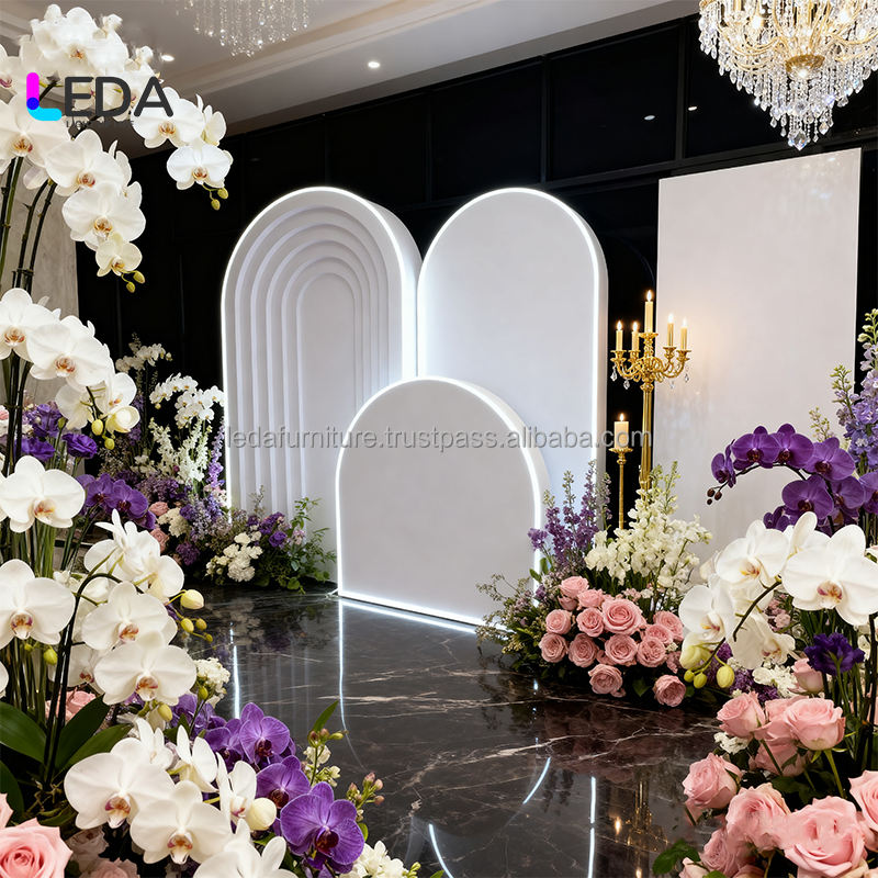 Lida กระดานตกแต่งงานแต่งงานแบบโค้ง PVC สีขาว3D สำหรับจัดเลี้ยงงานแต่งงานไฮเอนด์