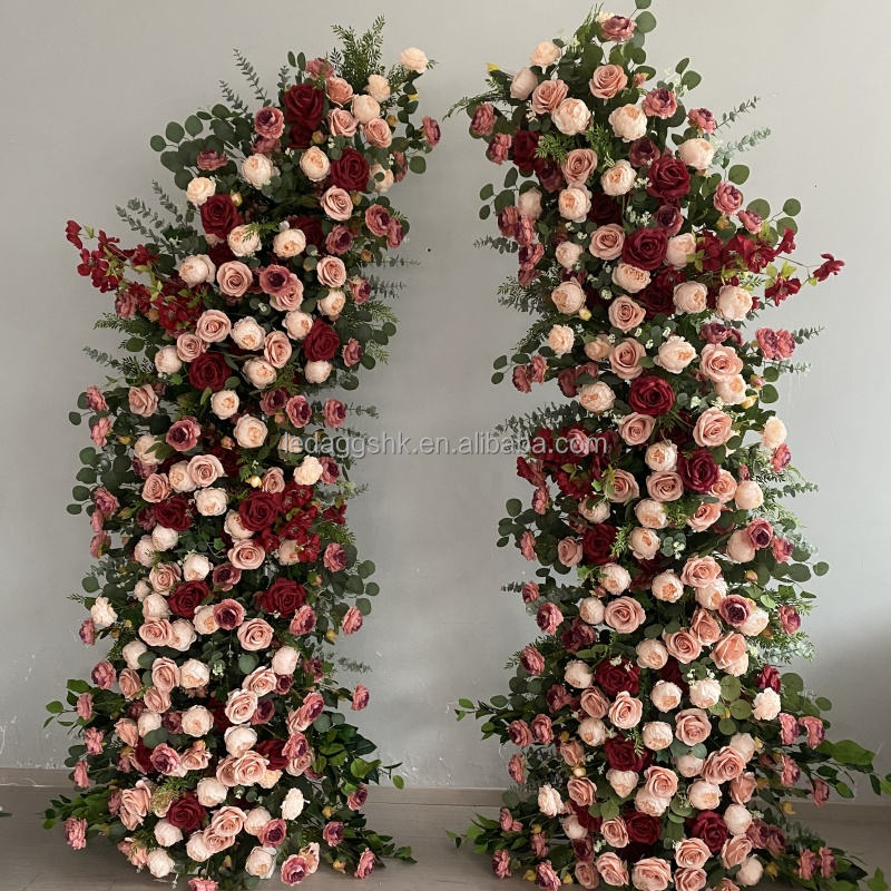 ซุ้มดอกไม้งานแต่งงาน LEDA ขายดี ดอกกุหลาบเบอร์กันดีประดิษฐ์ ดอกพีโอนีสีครีม สำหรับตกแต่งทางเดินในงานอีเว้นท์และงานปาร์ตี้