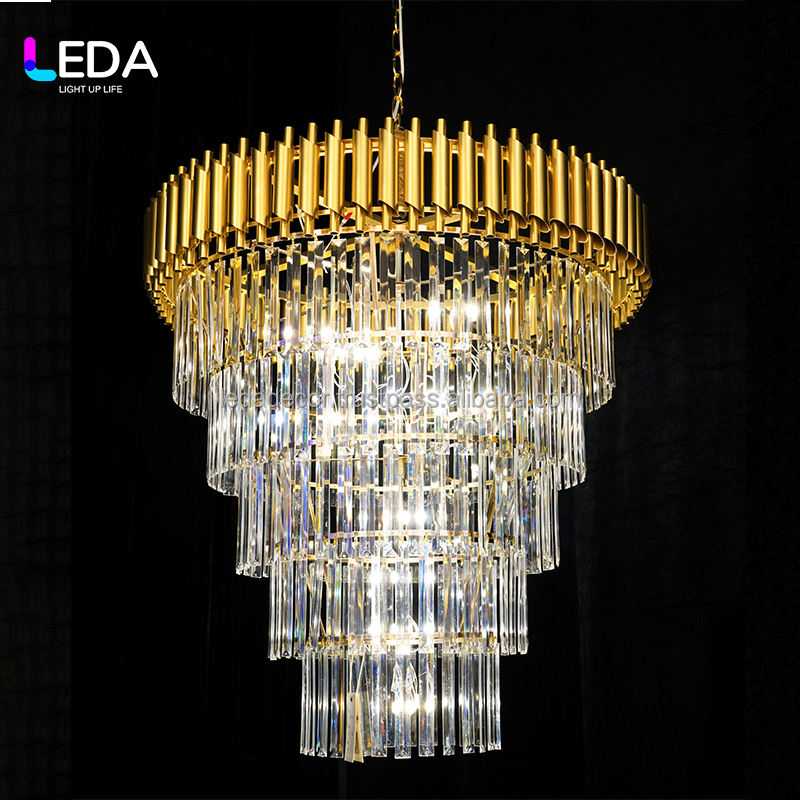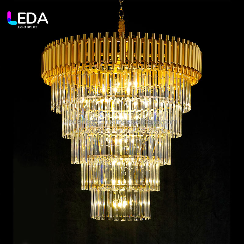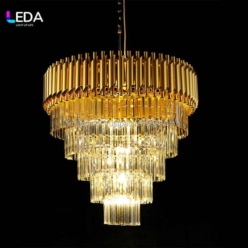 โคมไฟระย้าทรงเพชรอะคริลิค LED สีทอง รุ่น S-079 สำหรับตกแต่ง โรงแรม LEDA ห้องจัดงานแต่งงาน