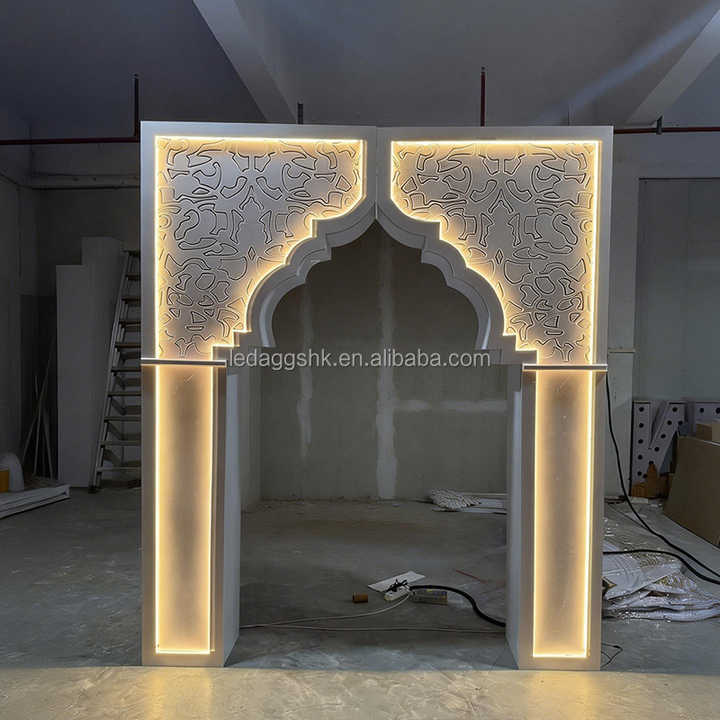 ฉากหลังอะคริลิคแกะสลักลายอินเดียอาหรับสำหรับงานแต่งงาน พร้อมขาตั้งและไฟประดับซุ้มโค้งสำหรับตกแต่งเวทีในงานอีเว้นท์