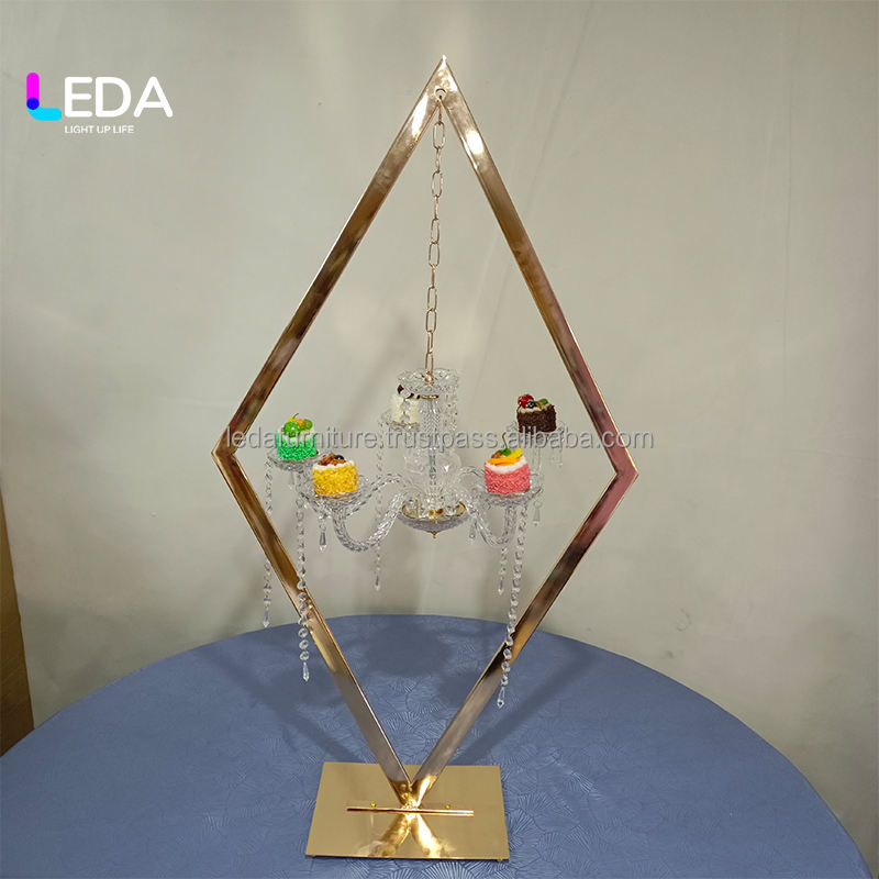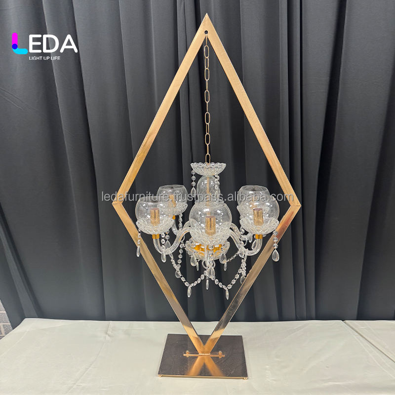Leda เชิงเทียนคริสตัลชุบด้วยไฟฟ้าสีทองทำจากคริสตัลของห้องโถงแต่งงานของโรงแรมโต๊ะหลักของตกแต่งดอกไม้