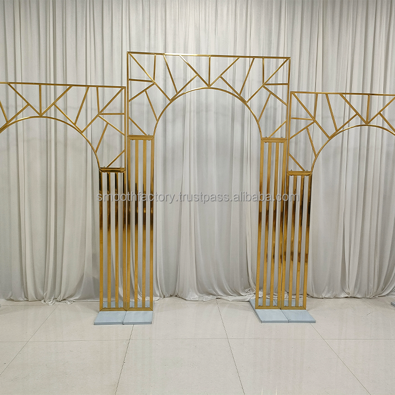 ฉากหลังงานแต่งงานสีทอง LEDA ดีไซน์ทันสมัย สวยงาม พร้อมโครงเหล็กสแตนเลสแบบถอดประกอบได้ สำหรับตกแต่งงานอีเว้นท์และงานปาร์ตี้