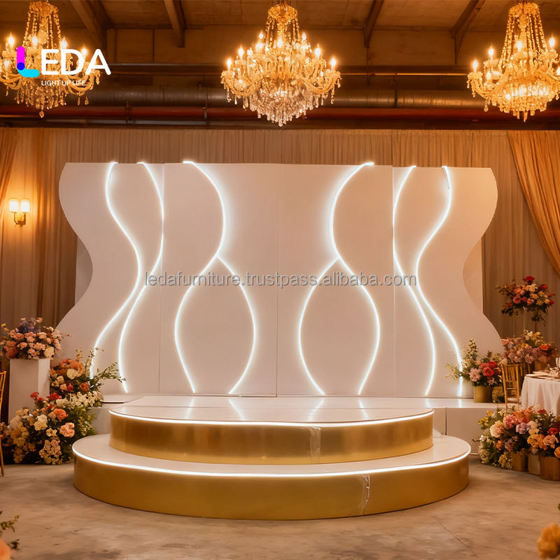 Leda การออกแบบแฟชั่นที่ทันสมัยขนาดใหญ่หรูหราฉากหลังแต่งงานสีขาวสำหรับตกแต่งเวทีงานแต่งงานพื้นหลัง