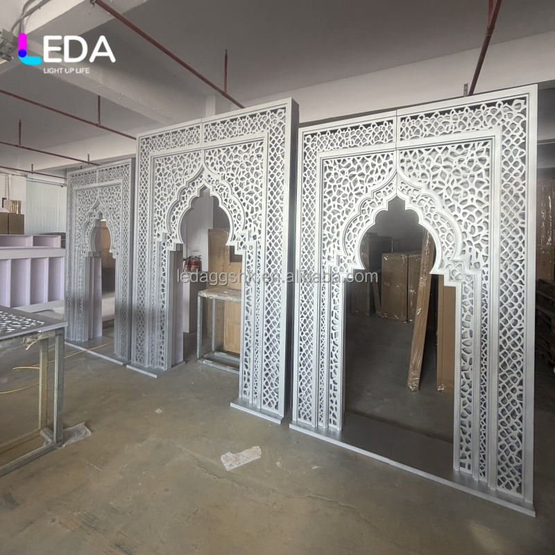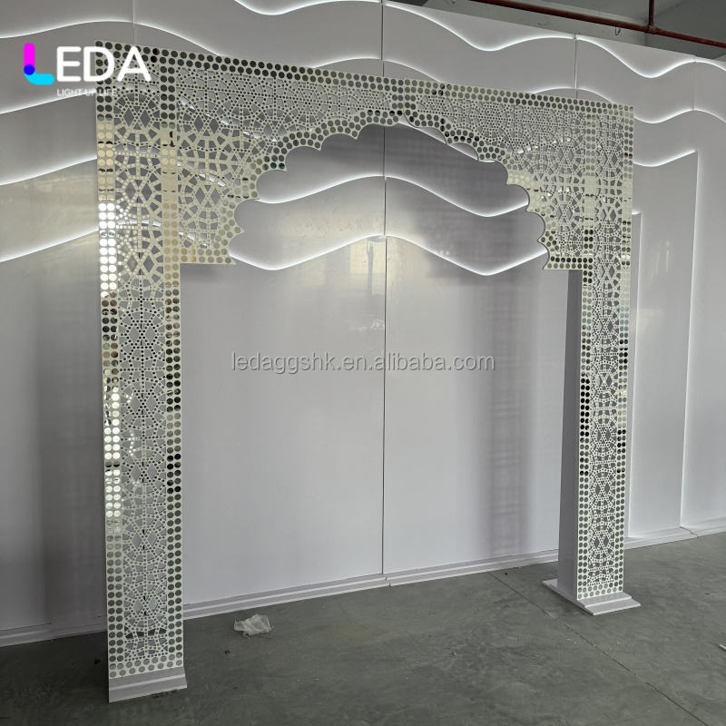 ซุ้มแต่งงานอะคริลิคสไตล์อินเดียลายฉลุแบบโมเดิร์นรุ่นใหม่จาก LEDA สำหรับเวทีงานแต่งงานและงานเทศกาลต่างๆ