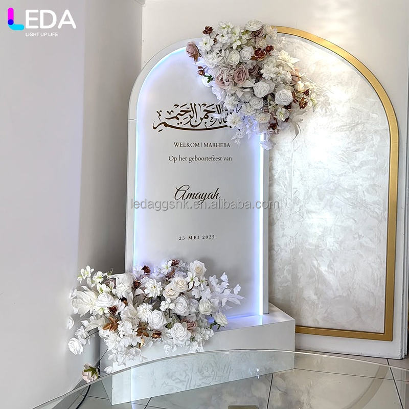 White Acrylic Backdrop with Light Led Welcome Sign Stand
