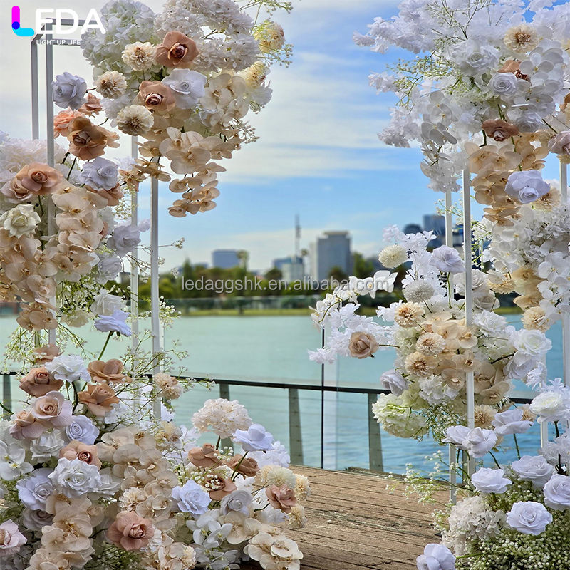 ฉากหลังดอกไม้ตกแต่งงานแต่งงานสมัยใหม่ LEDA ฉากหลังโลหะสีขาวสำหรับตกแต่งงานแต่งงาน งานอีเว้นท์ งานวันเกิด