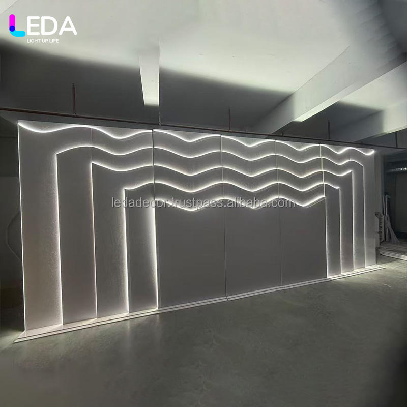 ฉากหลังอะคริลิคทรงโค้งแบบถอดได้ ดีไซน์ใหม่ของ LEDA พร้อมไฟ LED สีขาว สำหรับตกแต่งงานแต่งงานและงานอีเว้นท์