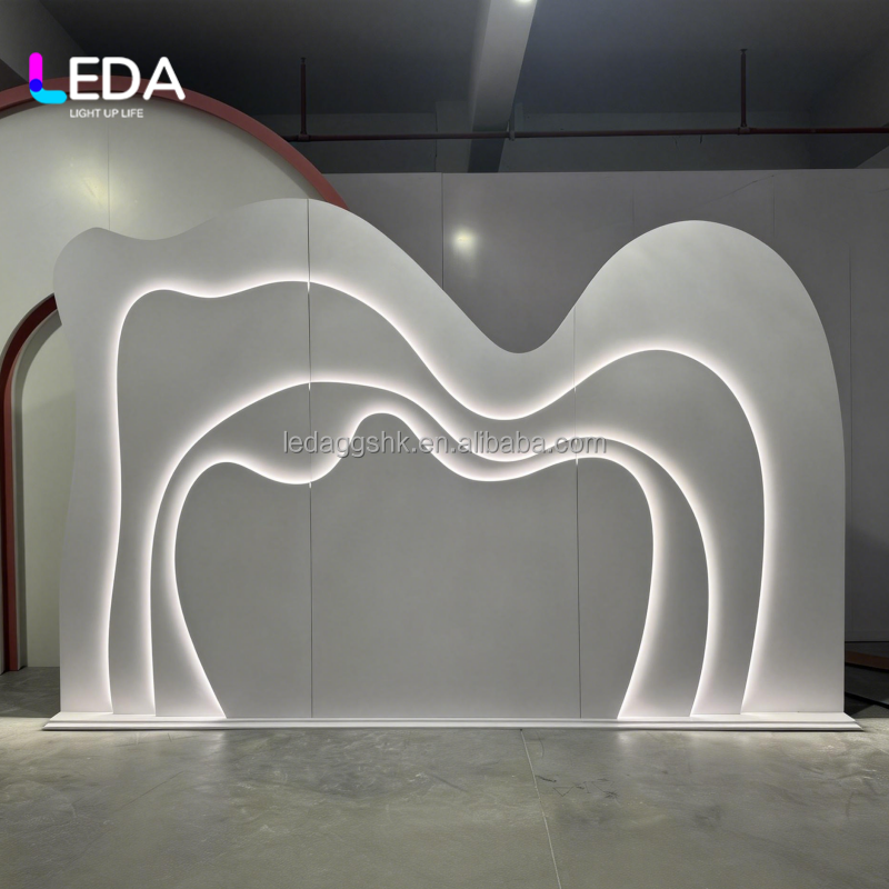 ฉากหลังงานแต่งงานดีไซน์ใหม่ LEDA สวยหรู พร้อมไฟตกแต่ง ฉากหลัง 3 มิติ สำหรับตกแต่งเวทีงานแต่งงาน แผ่นฉากหลังอะคริลิค PVC สำหรับงานอีเว้นท์