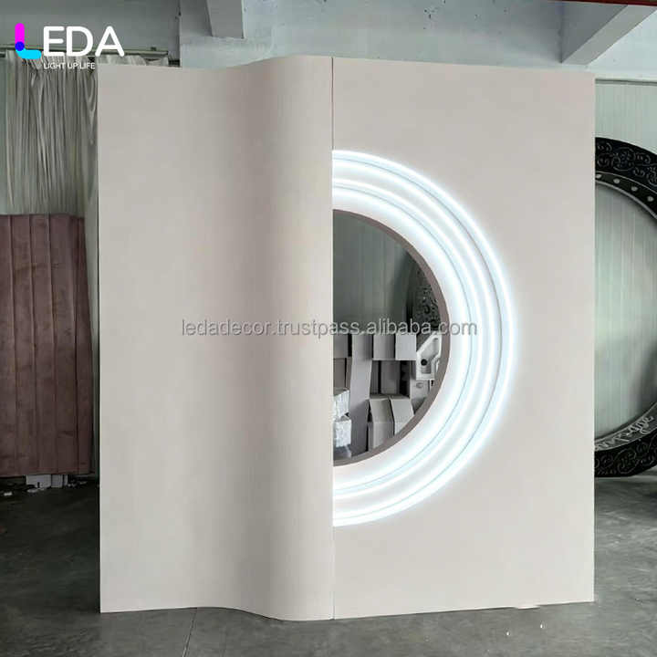 ซุ้มฉากหลังงานแต่งงานอะคริลิกรูปทรงกลมสีขาว ดีไซน์ใหม่จาก LEDA พร้อมแถบไฟเรืองแสง สำหรับตกแต่งงานแต่งงาน