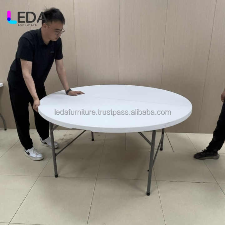 โต๊ะอาหารทรงกลมพับได้รุ่นใหม่ของ LEDA สำหรับงานเลี้ยง งานแต่งงาน ดีไซน์หรูหรา สีขาว