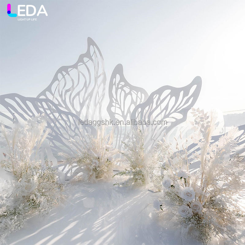 ฉากหลังเหล็กตกแต่งสวนกลางแจ้ง LEDA สำหรับงานแต่งงาน พร้อมขาตั้งดอกไม้โลหะสำหรับตกแต่งเวทีงานแต่งงาน
